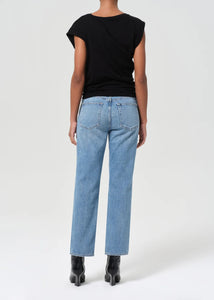 The AGOLDE Valen Jean Features: A mid-rise, slim straight jean in a light, non-stretch indigo denim. Worn in for comfort and perfect for pairing with oversized layers or minimal tanks.