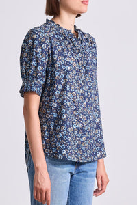 The Apiece Apart Los Altos Top Features: A short sleeve top in a ditsy floral pattern. Made from 100% organic cotton, this top features button closures, a ruffled neckline, high-low hem, and a puff sleeve.