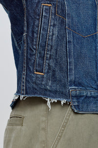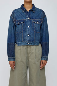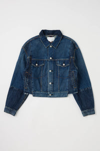 The Moussy Dover Two-Tone Jacket Features: A distinctive two-tone denim design, combining dark and light washes for a modern, vintage-inspired look. The jacket includes authentic buttoned chest pockets, side pockets, and a part-frayed hem, adding to its rugged charm. With a slightly cropped fit, it pairs effortlessly with high-waisted jeans or skirts, making it a versatile addition to any wardrobe.