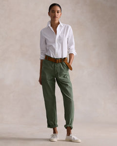 The Ralph Lauren Slim Fit Cotton Shirt Features: A tailored button-down poplin shirt crafted from end-on-end cotton with added stretch for all-day comfort. Finished with the signature embroidered Pony at the left chest.