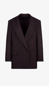 The Smythe Double Breasted Peaked Lapel Blazer Features: This oversized double-breasted blazer offers a relaxed, borrowed-from-the-boys look with a longline silhouette, extended lapels, and low-set pockets. Effortlessly chic over denim or styled as a modern “broken suit.” Size down for a closer fit.