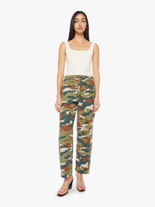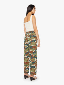 The Mother Drawn Half-Pipe Ankle Jean Features: A pair of super high-waisted pants with a drawstring waistband, wide, curved leg, an ankle-length inseam, and a clean hem. Crafted from 100% cotton denim in a classic camouflage pattern.