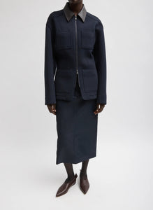 Images of the Navy Bonded Twill Sculpted Workmen Jacket Courtesy of Tibi