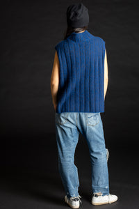 The Paychi Guh Dreamy Mock Vest Features: A cozy sweater vest crafted from lightweight, lofty air-jetted cashmere in a soft 5x2 rib for a luxurious handfeel and drape. Featuring a double-layered mock neck, slightly lowered armholes, and elongated side slits, it layers effortlessly and can even be worn inside out for an alternative texture.