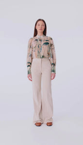 Images of the Green Brushstroke Bishop Sleeve Frontier Blouse Courtesy of Smythe