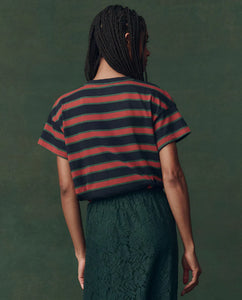 Images of the Navy Bridle Stripe Boxy Crew Courtesy of THE GREAT